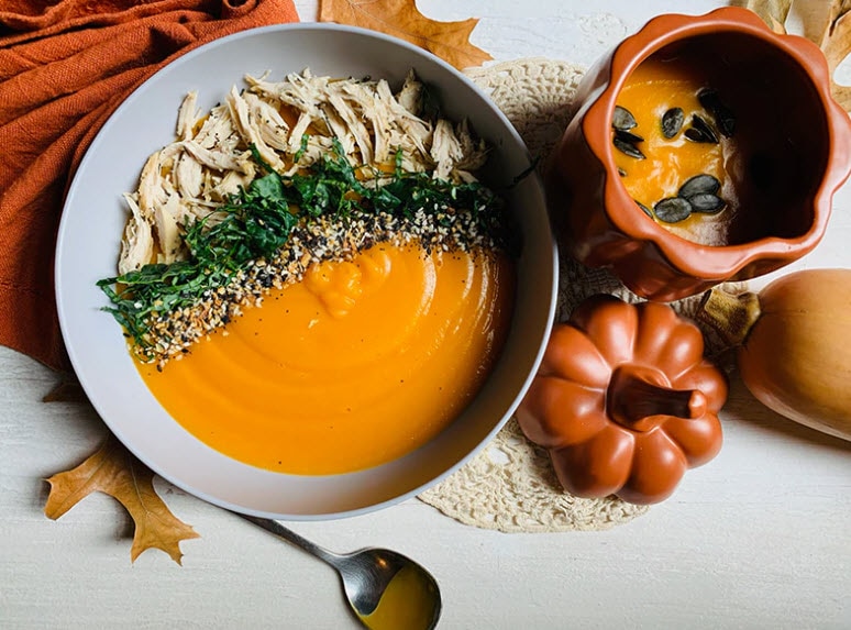 Butternut Squash Cream Soup with Shredded Chicken