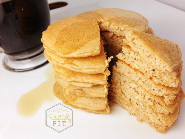 –Hazelnut Coffee Protein Pancakes (Greek yogurt, protein powder and eggs will keep you full for hours, and half a cup of coffee will amp up your energy levels to boot!)