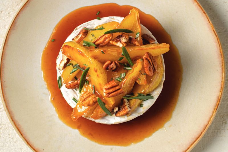 This brie cheese appetizer feels like a soft sweater for your snack board. Creamy brie melts gently beneath caramelized pears scented with rosemary and cinnamon, while toasted walnuts add a welcome crunch. It’s sweet, savory and quietly elegant—the kind of dish that invites lingering, wine refills and the sense that something special is unfolding, even on an ordinary night.