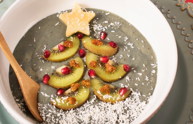 Of course, brunch is the most important meal of the day. So why not serve up a light, fluffy stack of banana pancakes (which you can make the day before!)? Round out your plant-based breakfast with a festive holiday smoothie bowl.