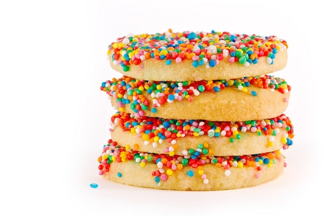 Sugar Cookies with White Chocolate Frosting & Sprinkles