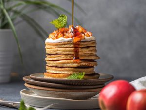 Maca Pancakes with Sautéed Cinnamon Apples & Pumpkin Spice Yogurt