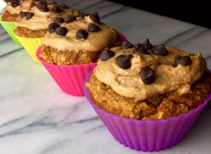 Pumpkin-Coconut Muffins with Peanut Butter Frosting