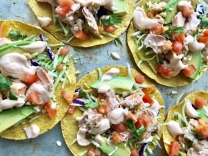 Crispy Fish Tacos with Strawberry-Pineapple Salsa & Chile-Lime Sauce