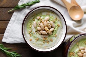 Creamy Potato & White Bean Soup with Rosemary and Kale Pesto