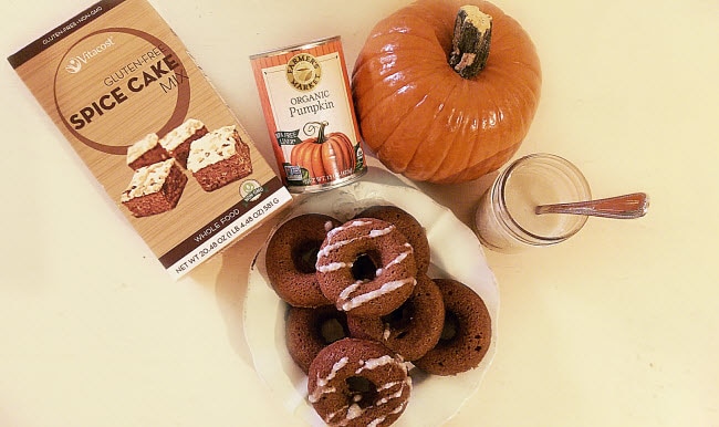Pumpkin donuts. You want them, and you want them now. But are they worth all the measuring, mixing and subsequent cleaning of the dishes you dirtied in the process of preparing them? Good news: all you need is a box and a can to make a moist, delicious, pumpkin dessert. And if you want to create your own coconut icing (and believe me, you do), all it takes is 5 simple ingredients and a few seconds of blending.