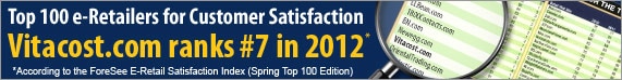 According to ForeSee’s e-Retail Top 100 Satisfaction Index (spring 2012 edition), Vitacost.com achieved the 7th highest score – earning us a top 10 ranking for the third consecutive year.